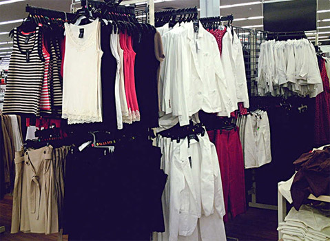Fig. 6: Botiga de gran cadena de moda amb els exhibidors plens de models en diferents talles i colors.